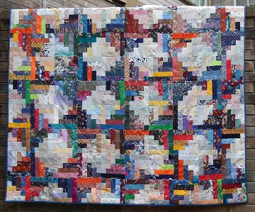 My #onemonthlygoal for March was to finish my scrappy “Lazy Log Cabin” quilt. Check! All done, and here’s a picture of my finished quilt! It will likely be a gift for my younger son, who enjoys hiking and picnics with his girlfriend (and their dogs). At 75″ square, this quilt is a nice size to spread on the ground for an outdoor luncheon!