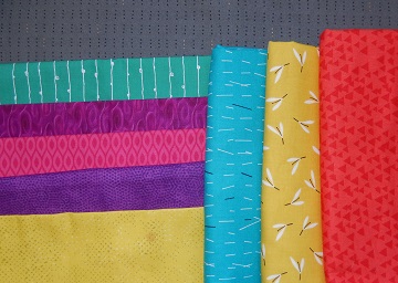 After some careful calculations, I’ve scrapped my design plan for this fabric pull because I didn’t have quite enough of the gray fabric. (That can happen when one purchases fabric without having a carefully planned design!) So the name will change from “Goose Trails” to something undetermined at this time.