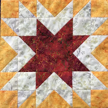 Stitch up the “Memory” block and show us a picture of your gorgeous block to receive the 9″ by 9″ square “Burning Star” block pattern (shown below) as a reward. You must submit the reward form by May 5 to earn your free pattern.