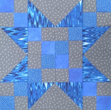 The color for April was blue (bright or light), and so I’ve made two more Sawtooth Star blocks, one with a white background and a second with gray background. I’ve used up this gray from my stash, so I’ll need to find more gray fabric to make my May blocks. I doubt that I’ll be able to match this fabric, but it’s a scrappy project and that’s OK.