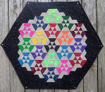 I used my equilateral triangle ruler to create my “Toxic Rainbow” quilt, pieced in 1992 and quilted in 1995.