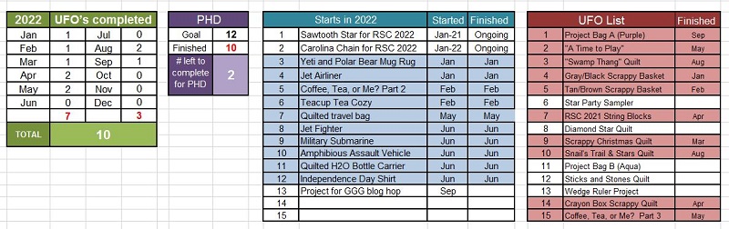 The #RSC2022 color for September was light blue, so I sifted through my scrappy blue fabric storage box and found some scraps to use. I made a Sawtooth Star block, and 10 Carolina Chain blocks.