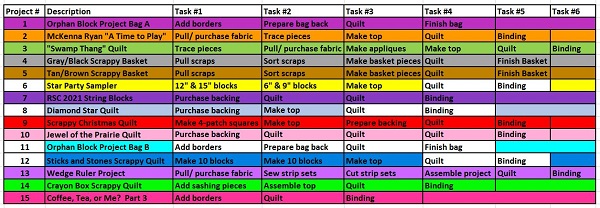 Here’s my updated task list, with only a few more unshaded cells: