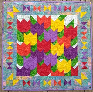 Way to go, Sharon!! I love your Tulip Patch quilt and your wall hanging – they are so bright and cheerful!