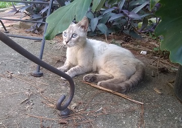 Mama has started to allow me to pet her when I bring food, although she does still growl at me on occasion. Her water source is the bird bath, which explains why the birds were going nuts on Saturday morning. . .