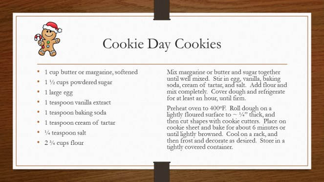 Did someone say “cookies”? Yes, I believe that cookies were part of this blog hop, and I don’t want to disappoint anyone. This is the recipe for our family’s traditional “Cookie Day” cookies.
