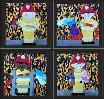 - Includes foundation pieced vehicle patterns for four fire vehicles, pictured below